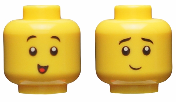 Minifigure, Head Dual Sided Child Black Eyebrows, Open Mouth Smile with Red Tongue / Grin Pattern