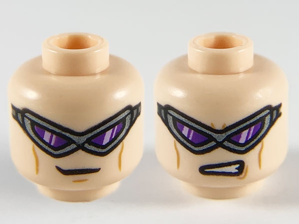 Minifigure, Head Dual Sided Pearl Dark Gray Visor, Dark Purple Lenses, Medium Nougat Cheek Lines, Small Grin / Gritted Teeth Pattern