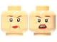 Minifigure, Head Dual Sided Female, Reddish Brown Eyebrows, Dark Orange Wrinkles, Red Lips, Raised Right Eyebrow / Surprised Pattern