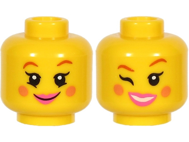 Minifigure, Head Dual Sided Female, Reddish Brown Eyebrows, Nougat Cheeks, Dark Pink Lips, Smile / Open Mouth and Winking Pattern (BAM)