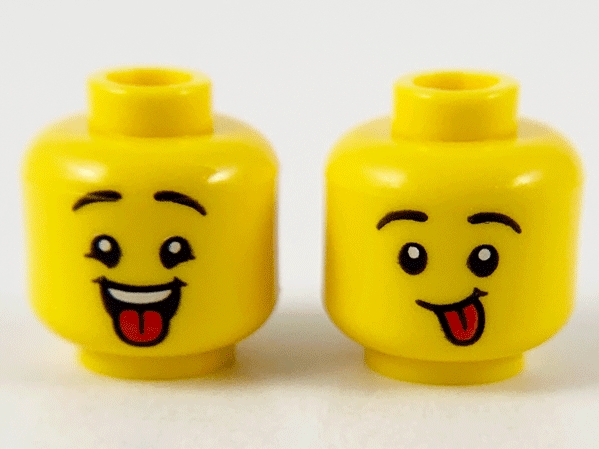 Minifigure, Head Dual Sided Child Black Eyebrows, Open Mouth with Red Tongue / Red Tongue Sticking Out Pattern