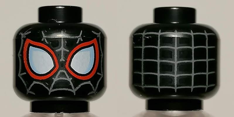 Minifigure, Head Alien with Spider-Man Dark Bluish Gray Webbing, Large White Eyes with Bright Light Blue Edges and Red Borders Pattern