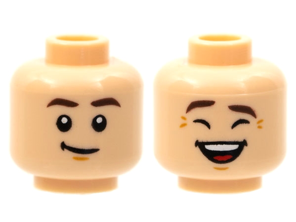 Minifigure, Head Dual Sided Dark Brown Eyebrows, Neutral / Laughing with Eyes Closed Pattern