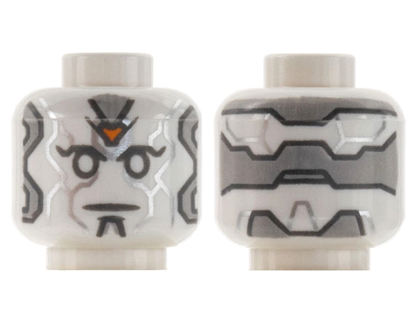 Minifigure, Head Alien Robot with Light Bluish Gray Panels, Silver Lines, and Orange Jewel on Forehead Pattern
