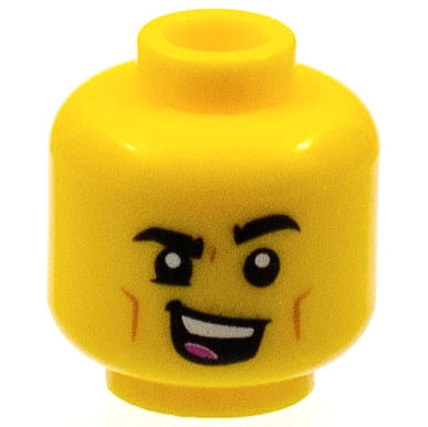 Minifigure, Head Black Eyebrows, Left Raised, Medium Nougat Cheek Lines, Singing Open Mouth, Dark Pink Tongue Pattern