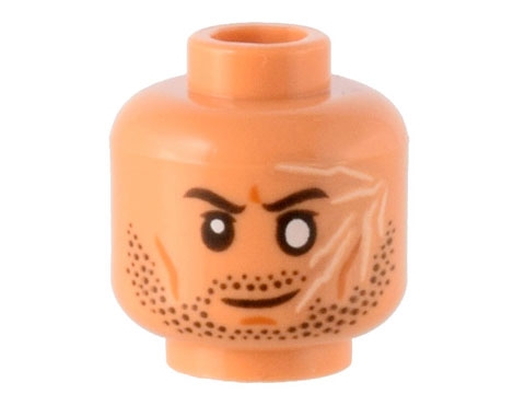 Minifigure, Head Black Eyebrows, Stubble, Dark Orange Brow Furrow, Cheek Lines and Chin Dimple, White Scars, Blind Left Eye Pattern