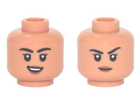 Minifigure, Head Dual Sided Female, Black Eyebrows, Medium Nougat Lips Open Mouth Smile / Raised Eyebrow Pattern