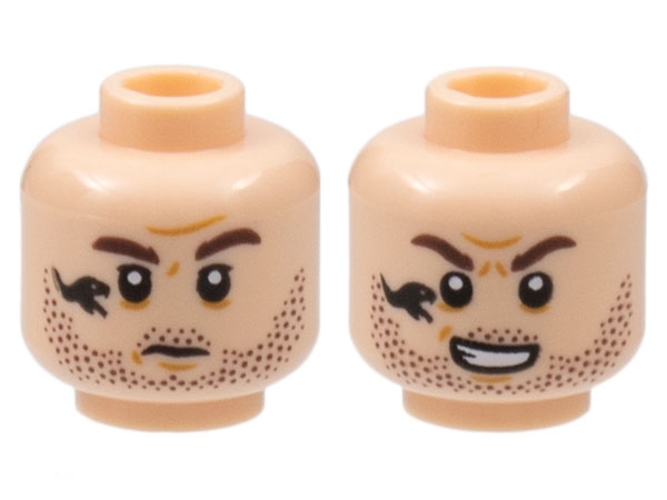 Minifigure, Head Dual Sided Beard Stubble, Reddish Brown Eyebrows, Black Snake Tattoo, Mouth Closed / Mouth Open Pattern