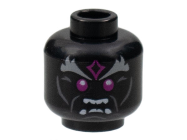 Minifigure, Head Alien Light Bluish Gray Bushy Eyebrows and Cheek Lines, Magenta Eyes and Diamond Shape Tattoo, Scowl with Teeth Pattern