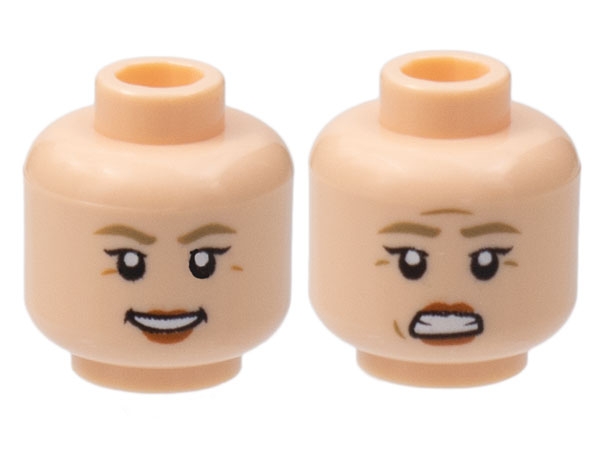 Minifigure, Head Dual Sided Female, Dark Tan Eyebrows, Dark Orange Lips, Smile / Scared Pattern