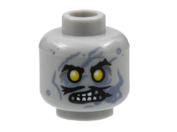 Minifigure, Head Alien Zombie Black Eyebrows and Moustache, Yellow Eyes, Open Mouth with Teeth, Sand Blue Streaks Pattern