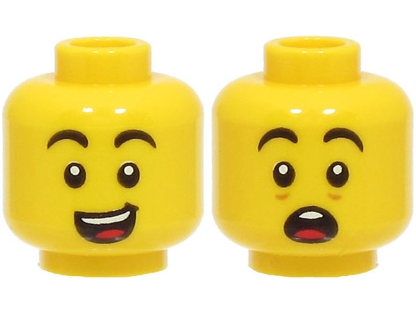 Minifigure, Head Dual Sided Black Eyebrows, Open Mouth with Teeth and Tongue, Wide Smile / Scared Pattern