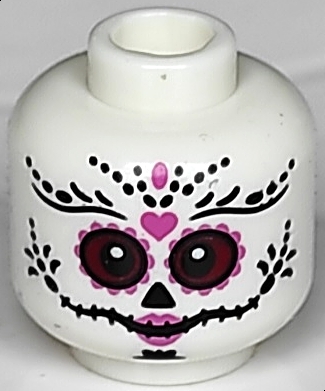 Minifigure, Head Alien Female La Catrina with Black Eyebrows, Triangular Nose, Stitched Mouth, Dark Red Eyes, Dark Pink Lips and Heart Pattern (BAM)