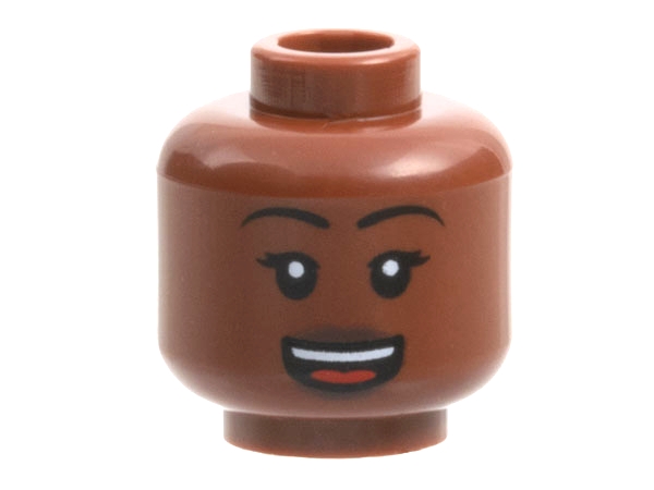 Minifigure, Head Female Black Eyebrows, Dark Brown Lips, Open Mouth Smile with Teeth and Tongue Pattern