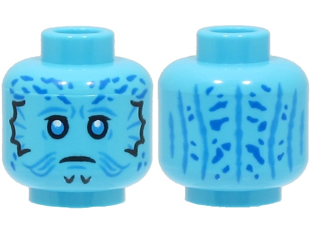 Minifigure, Head Alien SW Mythrol, Dark Azure Eyes and Contour Lines, Blue Spots on Forehead and Back, Frown Pattern