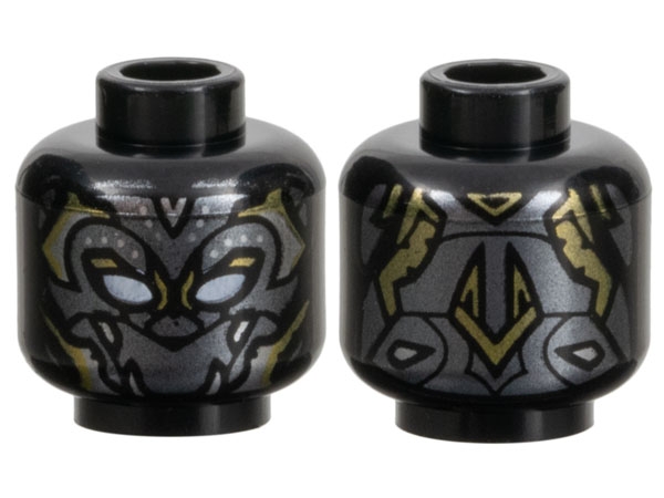 Minifigure, Head Mask with White Eye Holes, Dark Silver Armor Plates, Silver and Gold Trim Pattern