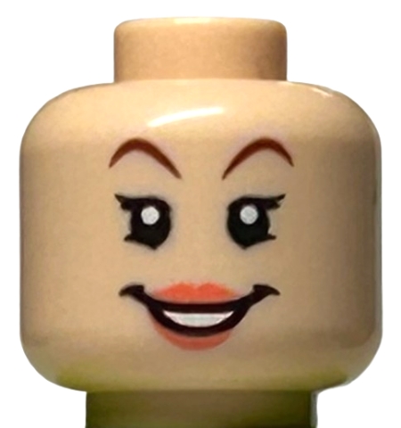 Minifigure, Head Female Reddish Brown Eyebrows, Coral Lips, Open Mouth Smile with Teeth Pattern