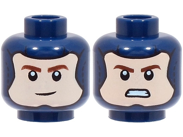 Minifigure, Head Dual Sided Balaclava, Light Nougat Face with Reddish Brown Eyebrows, Smile / Angry Pattern