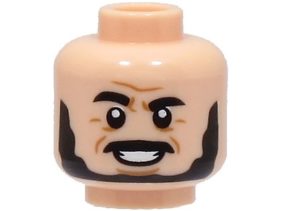 Minifigure, Head Black Eyebrows, Moustache and Beard, Medium Nougat Forehead and Cheek Lines, Chin Dimple, Open Mouth Smile Pattern