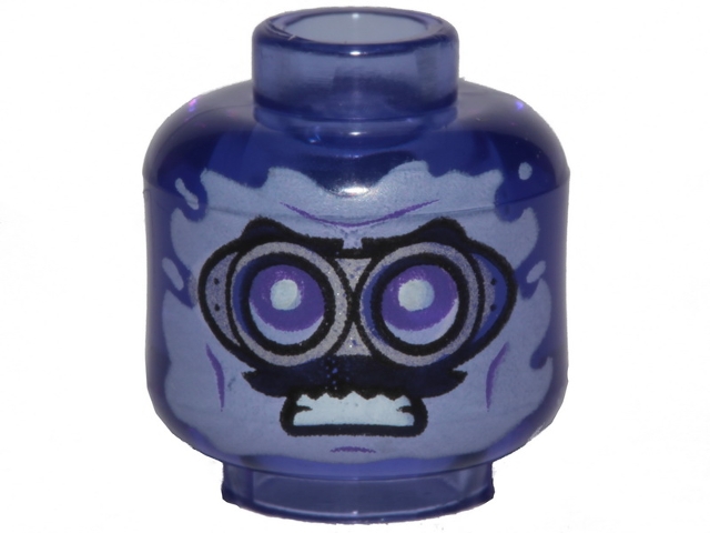 Minifigure, Head Silver Goggles, Black Moustache, Angry Pattern