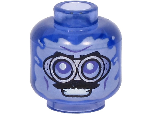 Minifigure, Head Silver Goggles, Black Moustache, Smile Pattern