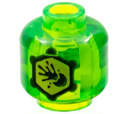 Minifigure, Head without Face with Yellow Hexagon with Black Outline and Exploding Ball Pattern on Both Sides