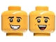 Minifigure, Head Dual Sided Black Eyebrows, Reddish Brown Dimples, Lopsided Open Mouth Smile with Teeth / Laughing with Dark Red Tongue Pattern