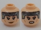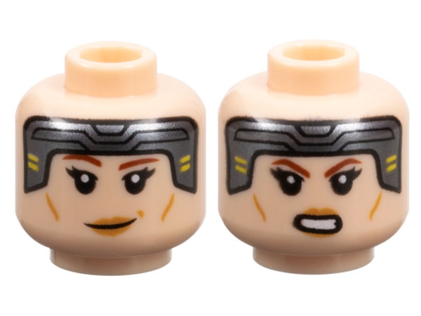 Minifigure, Head Dual Sided Female Dark Silver Headband, Reddish Brown Eyebrows, Medium Nougat Lips, Smile / Open Mouth Angry Pattern (SW Bo-Katan Kryze)