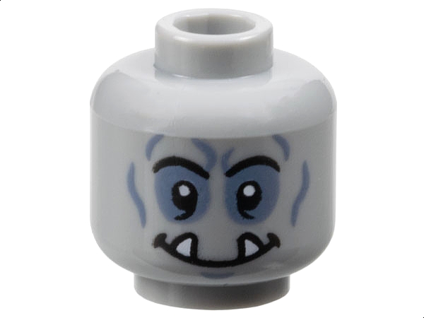 Minifigure, Head Alien Orc Black Eyebrows, Sand Blue Eye Shadow, Chin Dimple, and Wrinkles, Wide Grin with Bottom Fangs Pattern