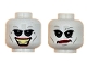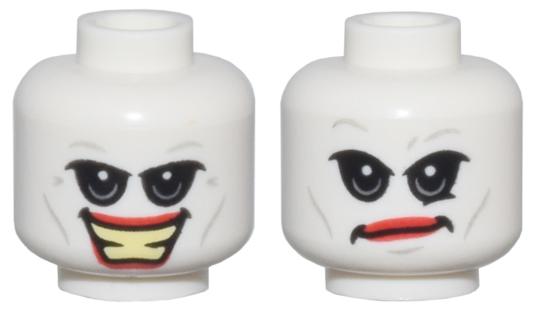 Minifigure, Head Dual Sided Black and Light Bluish Gray Eyes with Upper Eyelids, Red Lips, Open Mouth Smile with Bright Light Yellow Teeth / Smirk Pattern