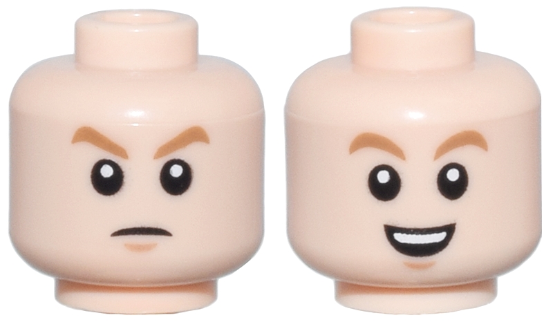 Minifigure, Head Dual Sided Medium Nougat Eyebrows, Nougat Chin Dimple, Angry Frown / Open Mouth Smile with Top Teeth Pattern