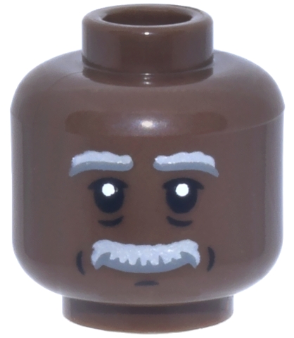 Minifigure, Head Light Bluish Gray and Dark Bluish Gray Bushy Eyebrows and Moustache, Upper Eyelids, Black Wrinkles and Chin Dimple, Grin Pattern