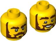 Minifigure, Head Dual Sided Reddish Brown Bushy Eyebrows, Moustache, Beard and Sideburns, Stern / Open Mouth Smile with Top Teeth Pattern