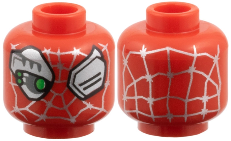 Minifigure, Head Alien Silver Webbing, Eyes and Cyborg Eyepiece, Bright Green Eye Sensors Pattern