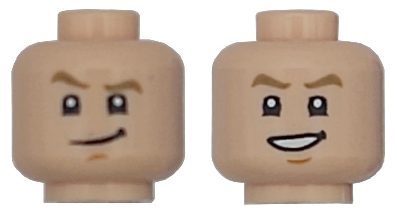 Minifigure, Head Dual Sided Dark Tan Eyebrows, Medium Nougat Chin Dimple, Lopsided Grin / Open Mouth Smile with Teeth Pattern