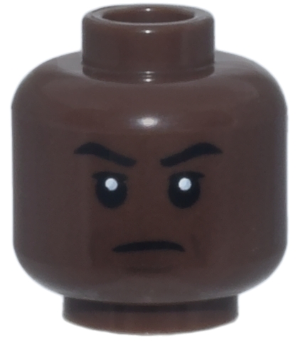 Minifigure, Head Black Eyebrows, Dark Brown Chin Dimple and Creases, Closed Mouth Frown Pattern