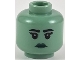 Minifigure, Head Female Black Squared Eyebrows, Eyelashes and Eyes, Dark Green Lips, Closed Mouth Neutral Pattern
