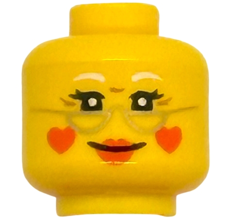 Minifigure, Head Female White Eyebrows, Black Double Eyelashes, Gold Glasses, Red Lips and Hearts on Cheeks, Grin Pattern (BAM)