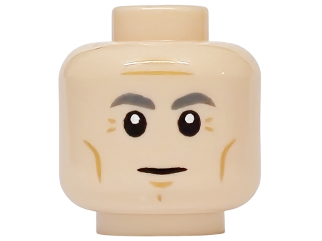 Minifigure, Head Dark Bluish Gray Thick Eyebrows, Medium Nougat Forehead Creases, Crow's Feet, Cheek Lines and Chin Dimples, Neutral Pattern