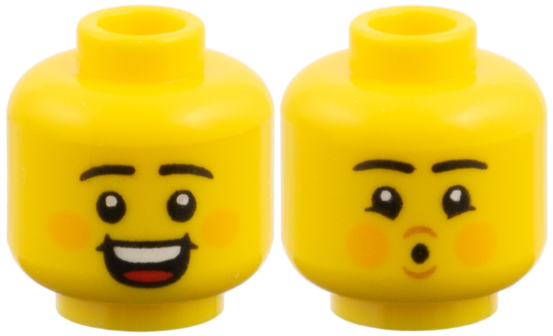 Minifigure, Head Dual Sided, Black Eyebrows, Orange Cheeks, Open Smile / Pucker Pattern
