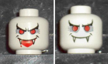 Minifigure, Head Dual Sided Alien with Red Eyes, Fangs, Mouth Open / Mouth Closed Pattern (Vampire)