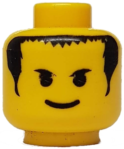 Minifigure, Head Male Smile, Black Eyebrows, Short Bangs and Long Hair Pattern