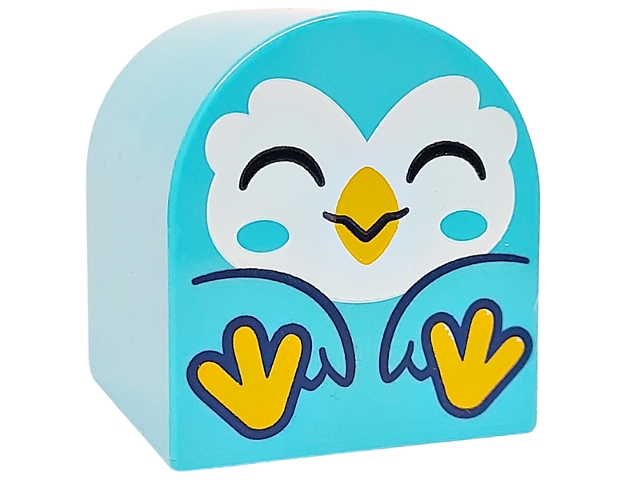 Duplo, Brick 2 x 2 x 2 Slope Curved Double with Bird with White Face, Bright Light Orange Beak and Feet and Black Eyes Closed Pattern