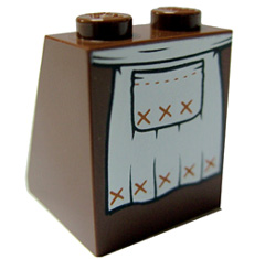 Slope 65 2 x 2 x 2 with Bottom Tube with Minifigure Dress / Skirt / Robe, Apron with Black Pocket Pattern