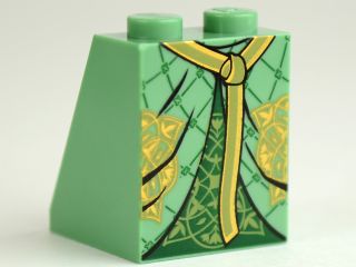 Slope 65 2 x 2 x 2 with Bottom Tube with Minifigure Dress / Skirt / Robe, Layered with Dark Green Panel and Gold Belt Pattern