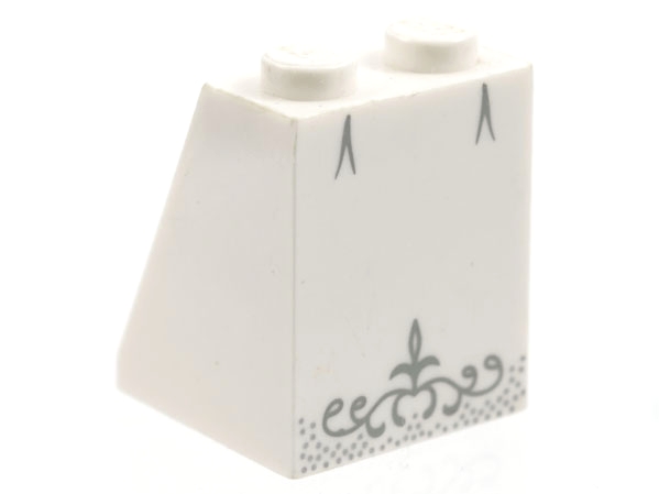Slope 65 2 x 2 x 2 with Bottom Tube with Minifigure Dress / Skirt / Robe, Wedding with Silver Trim Pattern