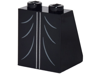 Slope 65 2 x 2 x 2 with Bottom Tube with Minifigure Dress / Skirt / Robe, Silver Vertical Lines and Curved Folds Pattern