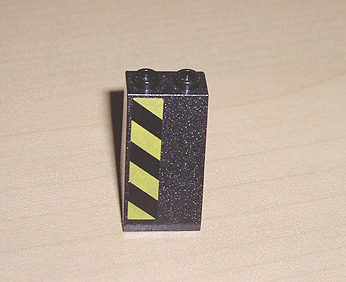 Slope 75 2 x 2 x 3 - Hollow Studs with Black and Yellow Danger Stripes Pattern Model Left Side (Sticker) - Set 7702