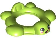 Duplo Bath Toy 8 x 8 Floating Ring, Top - Turtle with Black Eyes, Coral Ovals on Cheeks, Lopsided Open Mouth Smile with Tongue Pattern