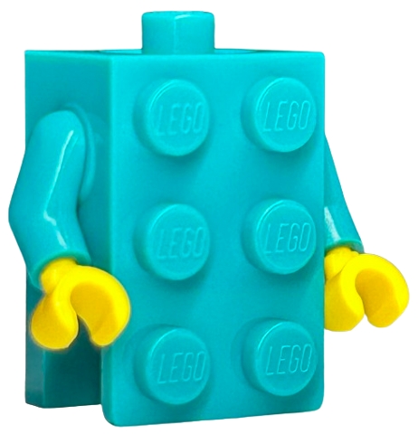 Torso, 2 x 3 Brick Costume / Dark Turquoise Arms / Yellow Hands (BAM)